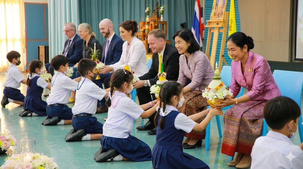 One of the most important traditions is the Wai Kru ceremony, during which students show respect and gratitude to their teachers by bowing and offering flowers. This ceremony reflects Thai values such as respect, humility, and appreciation for knowledge. In addition, teachers often take part in merit-making ceremonies, including Buddhist prayers and offerings. Awards are also given to outstanding teachers in recognition of their dedication and service.