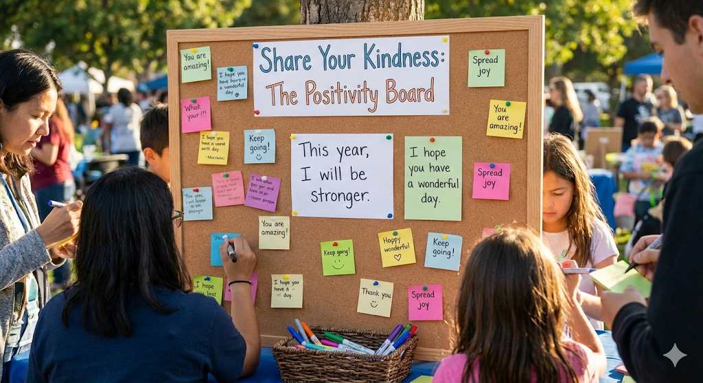 💌 1. Share Your Kindness: The Positivity Board We believe that "One kind word can change someone's entire day." At the event, we’ve prepared a special "Kind Words Board." We invite everyone to pick up a pen and write a short message—whether it’s a wish, a compliment, or a word of encouragement—and post it on the board to share your feelings.